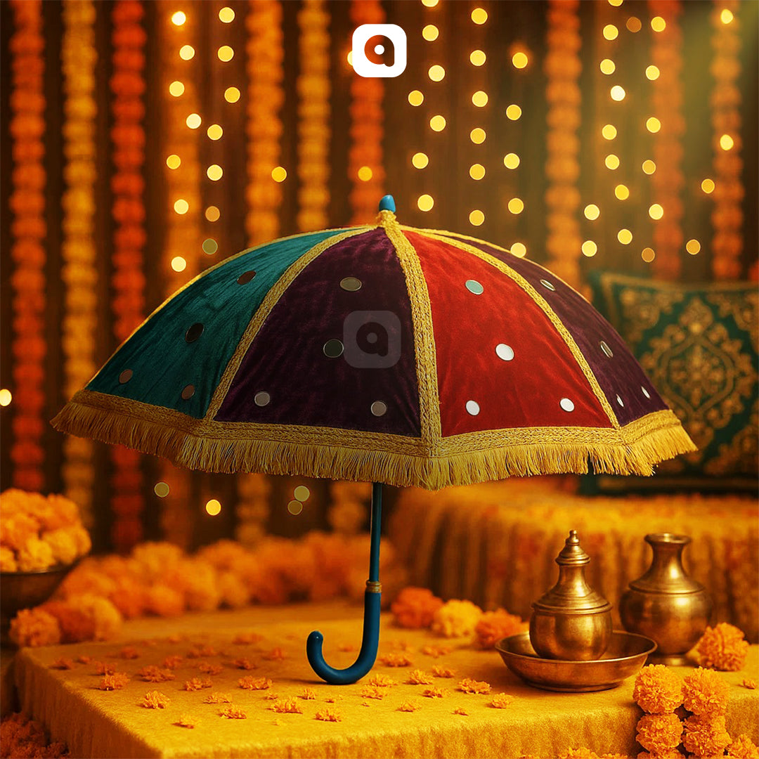 Add color and charm to your event setup with this Decorative Velvet Umbrella, perfect for weddings, mehndi, mayoun, or festive displays. Covered in soft velvet fabric with detailed accents, it serves as a beautiful centerpiece or backdrop element.