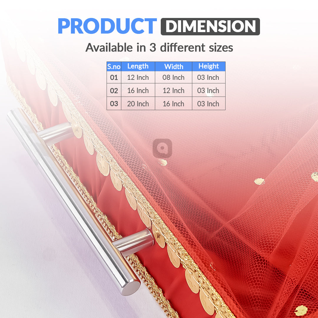 Set of 3 - Red Fabric Satin Trays Set – Decorative Display & Wedding Trays