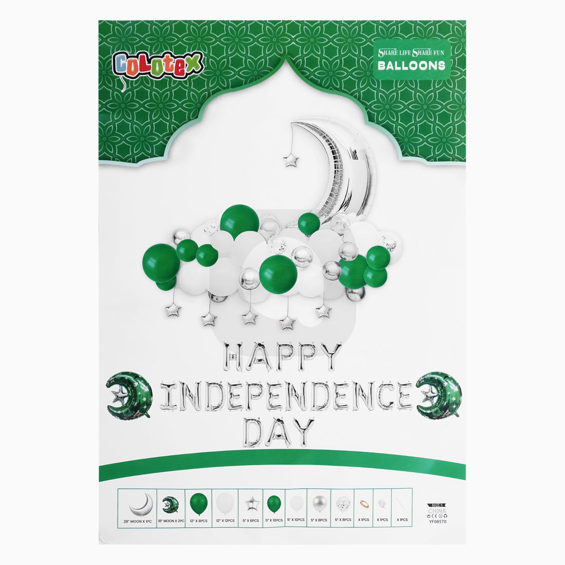 Pack of 100 - 14th August Balloons - Green & White Balloons - Ardor UAE