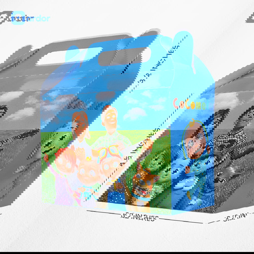 Elevate your event with our pack of 10 Cocomelon Goodie Boxes. Perfect for any occasion, these versatile boxes feature a simple and customizable design. Made from high-quality materials, they provide a reliable and stylish packaging solution. Each pack contains 10 pre-cut and pre-scored boxes, making them easy to assemble. Impress your guests with these chic and functional favor boxes.