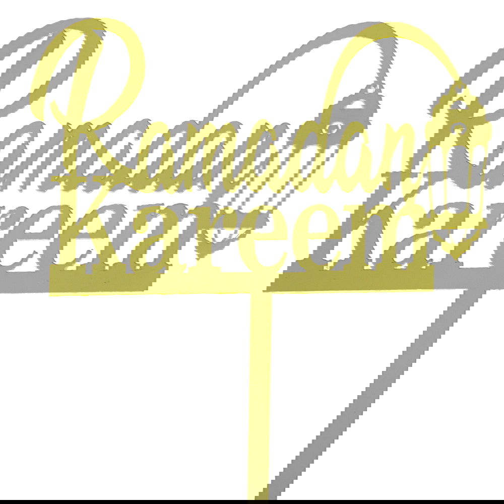 Dimensions: 5 x 5.5 inches. Sleek gold finish. Elegant addition to any Ramadan celebration. Celebrate in style with our Ramadan Kareem Cake Topper.